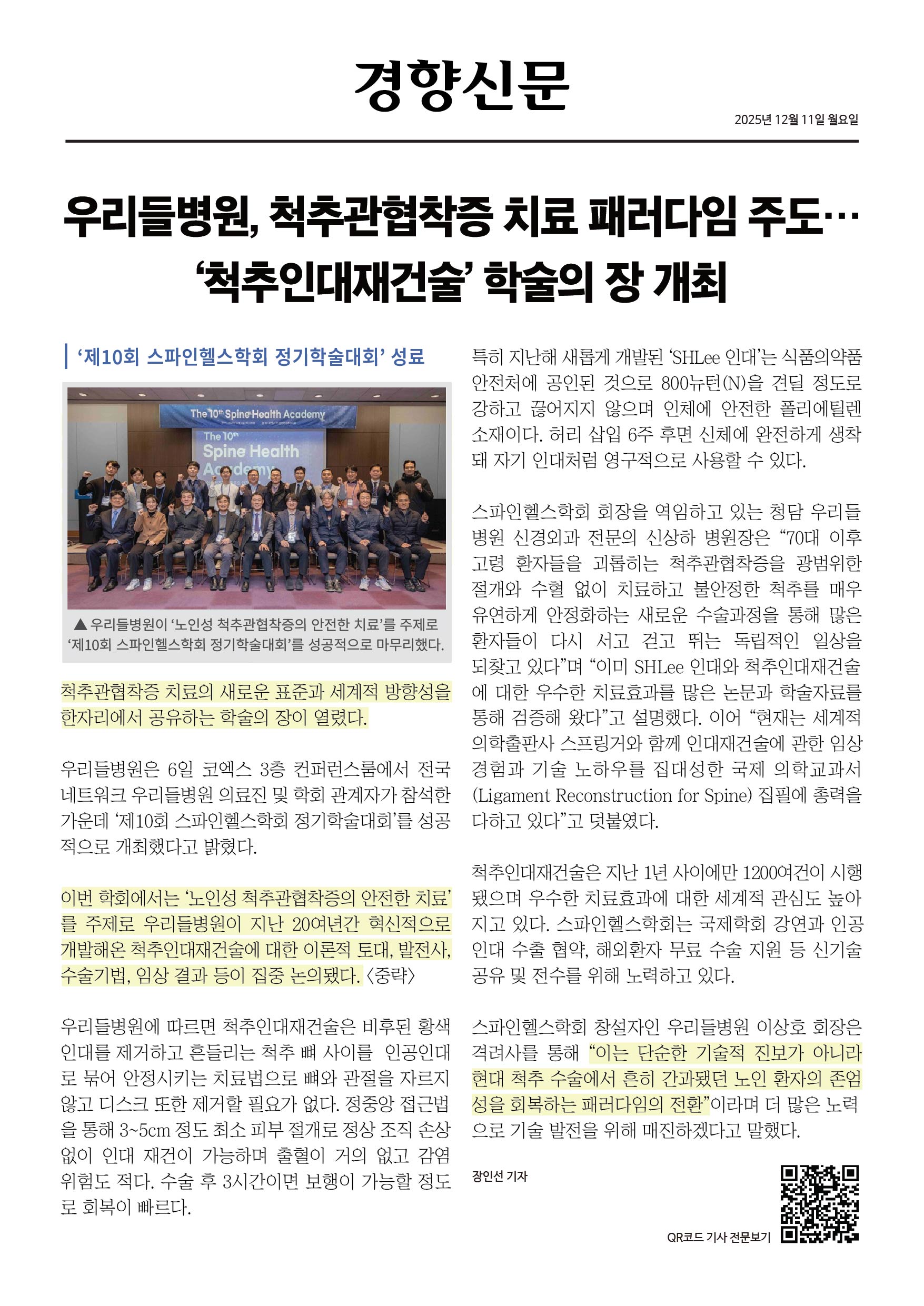 ‘제10회 스파인헬스학회 정기학술대회’를 성공적으로 개최했다고 밝혔다.
