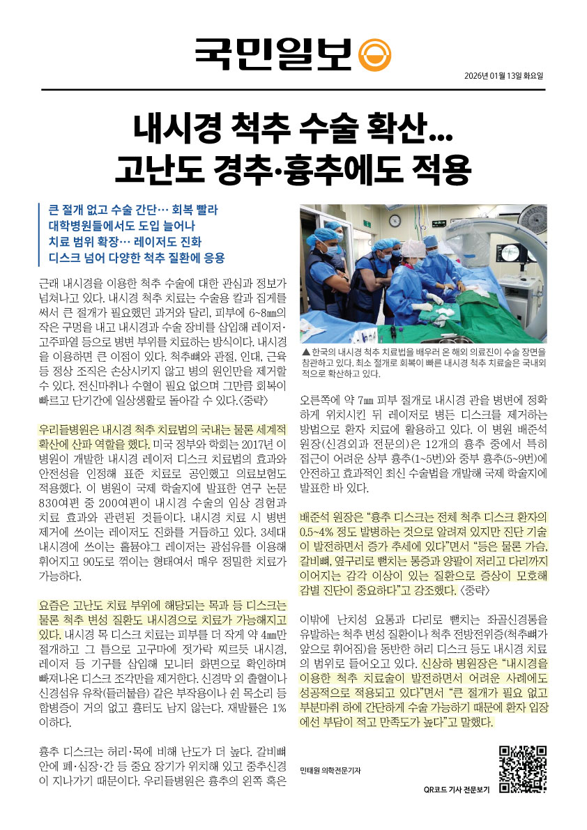 근래 내시경을 이용한 척추 수술에 대한 관심과 정보가 넘쳐나고 있다.
