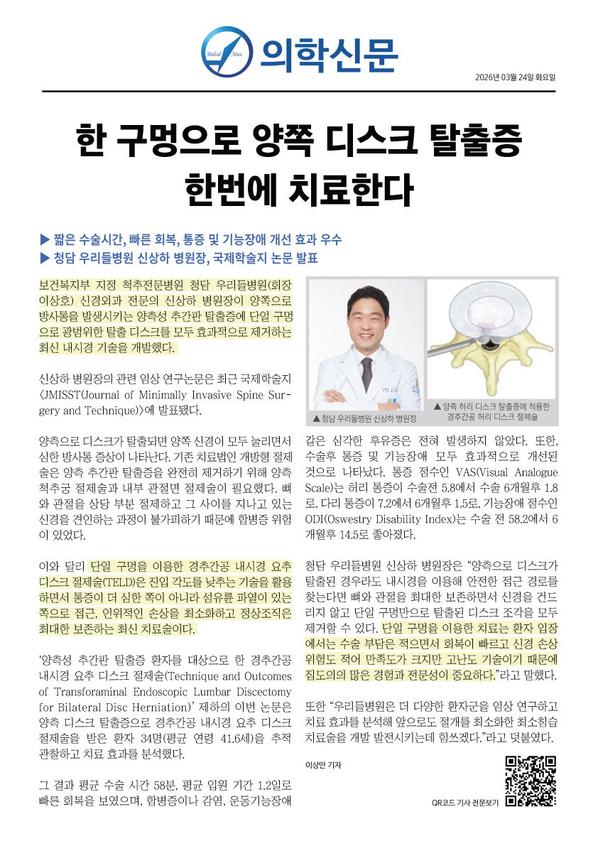 <JMISST(Journal of Minimally Invasive Spine Surgery and Technique)>에 발표됐다.